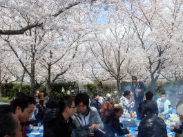 年度末の忙しさも一段落し、新入社員の歓迎会も兼ねて行います。豪華な食材でのバーベキューやカラオケを用意し桜の木の下での宴会。