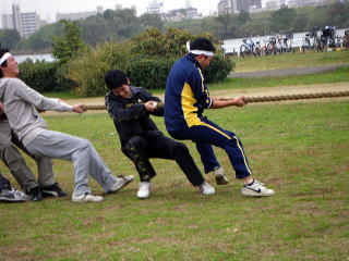 社員のご家族にも参加していただき一同が力をあわせて頑張っています。紅白に別れ競い合い、チーム一丸となって勝利を目指します。