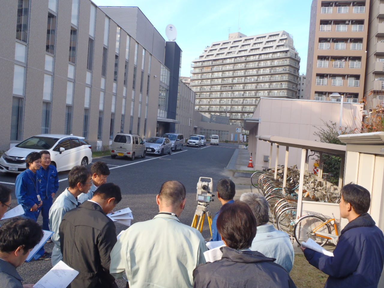大阪府測量設計業協会主催で、地図や測量への理解を深めてもらうことを目的とし、社会貢献の一環として、測量体験学習を実施しています。