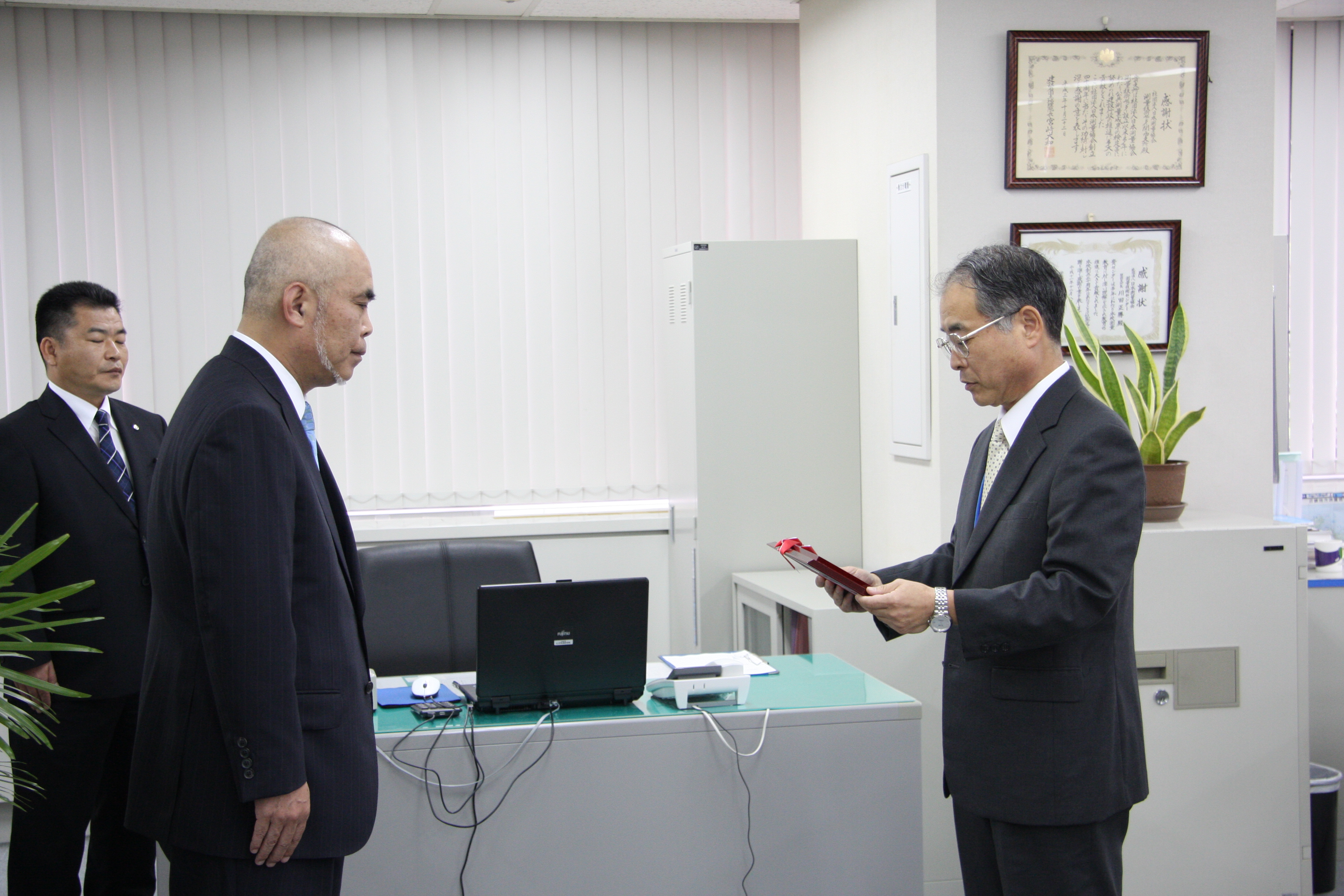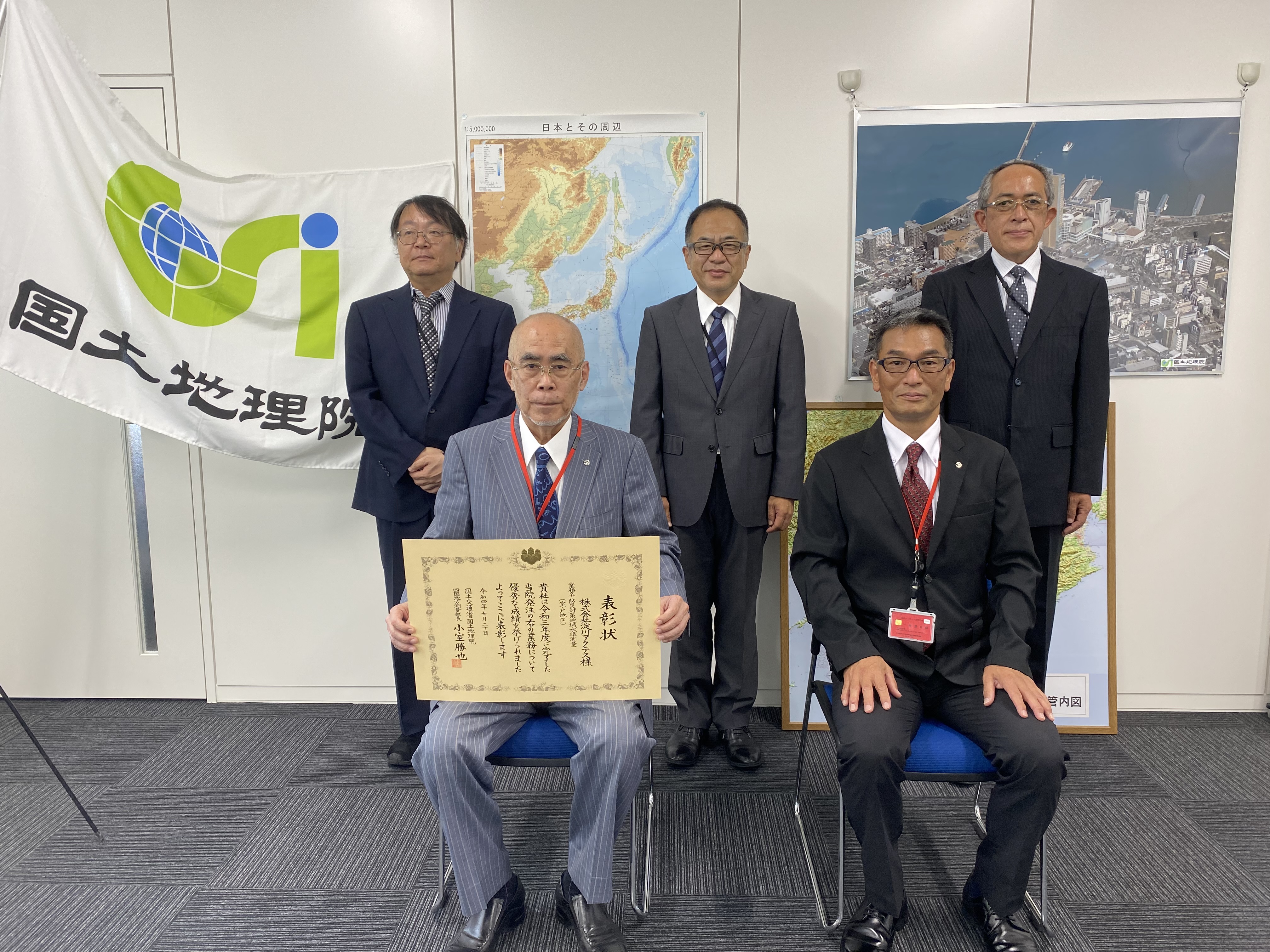 21年度の優良業務表彰は全国で7社、そのうち国土地理院長表彰は4社であり、当社はその中の1社に選ばれました。