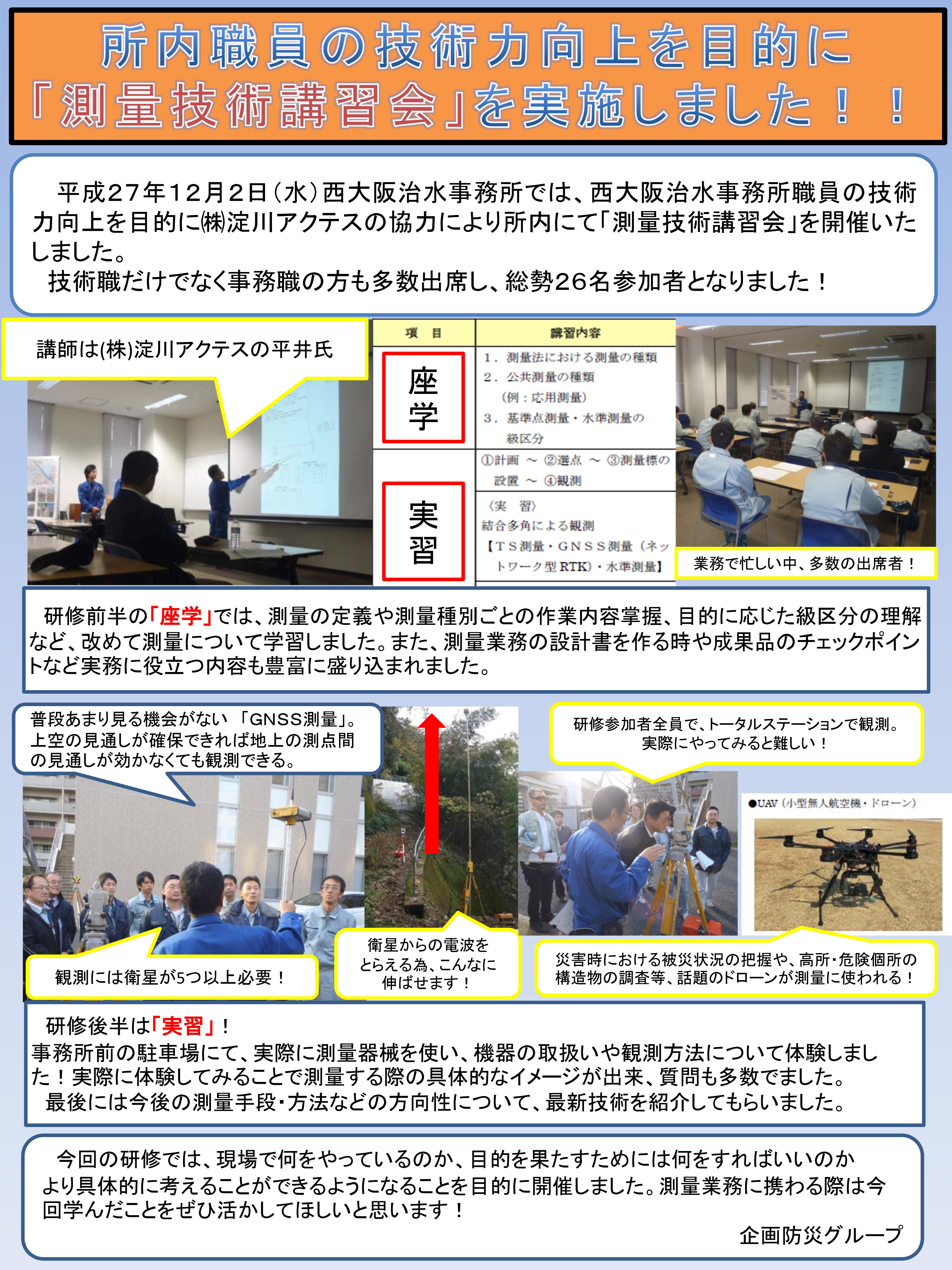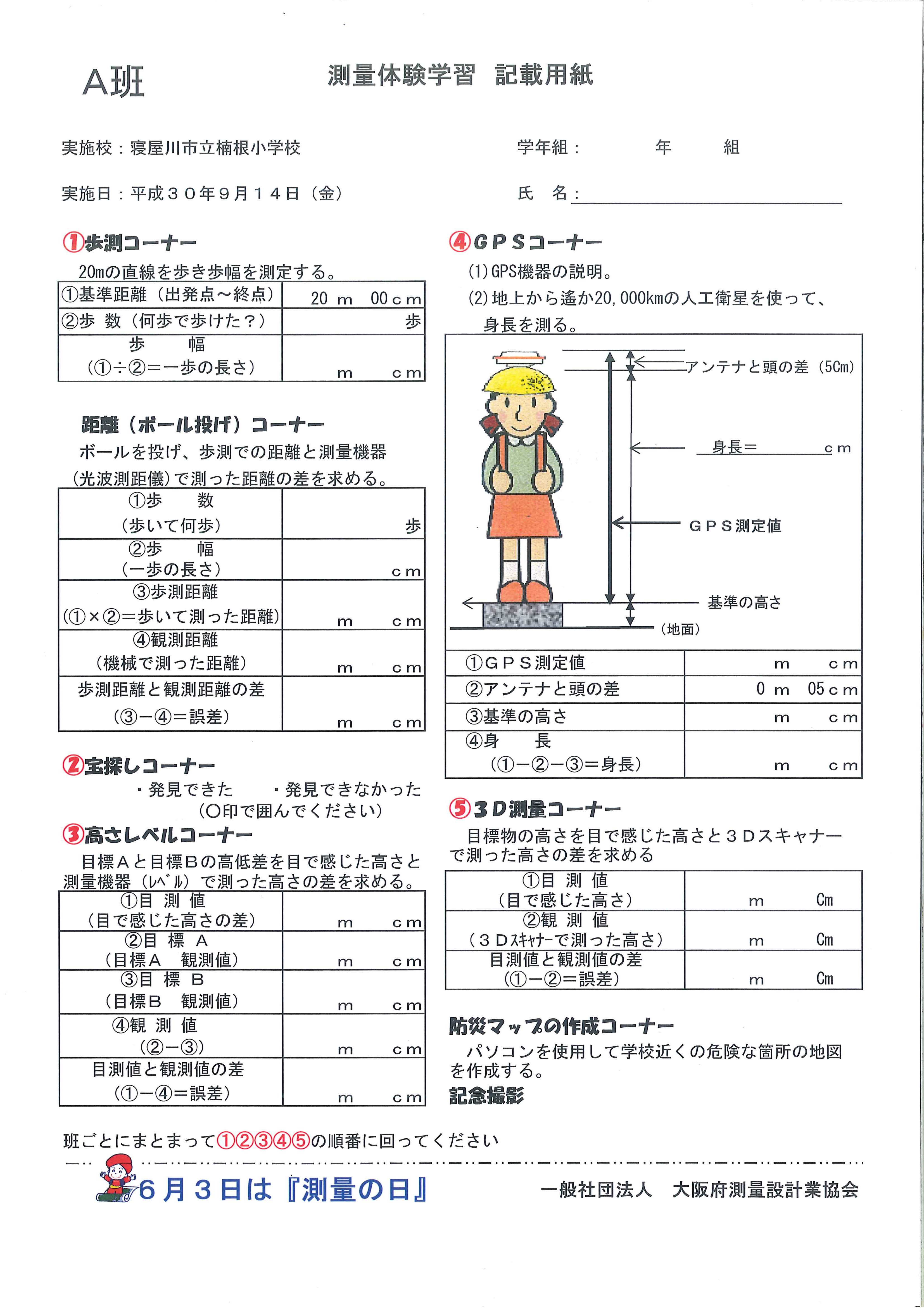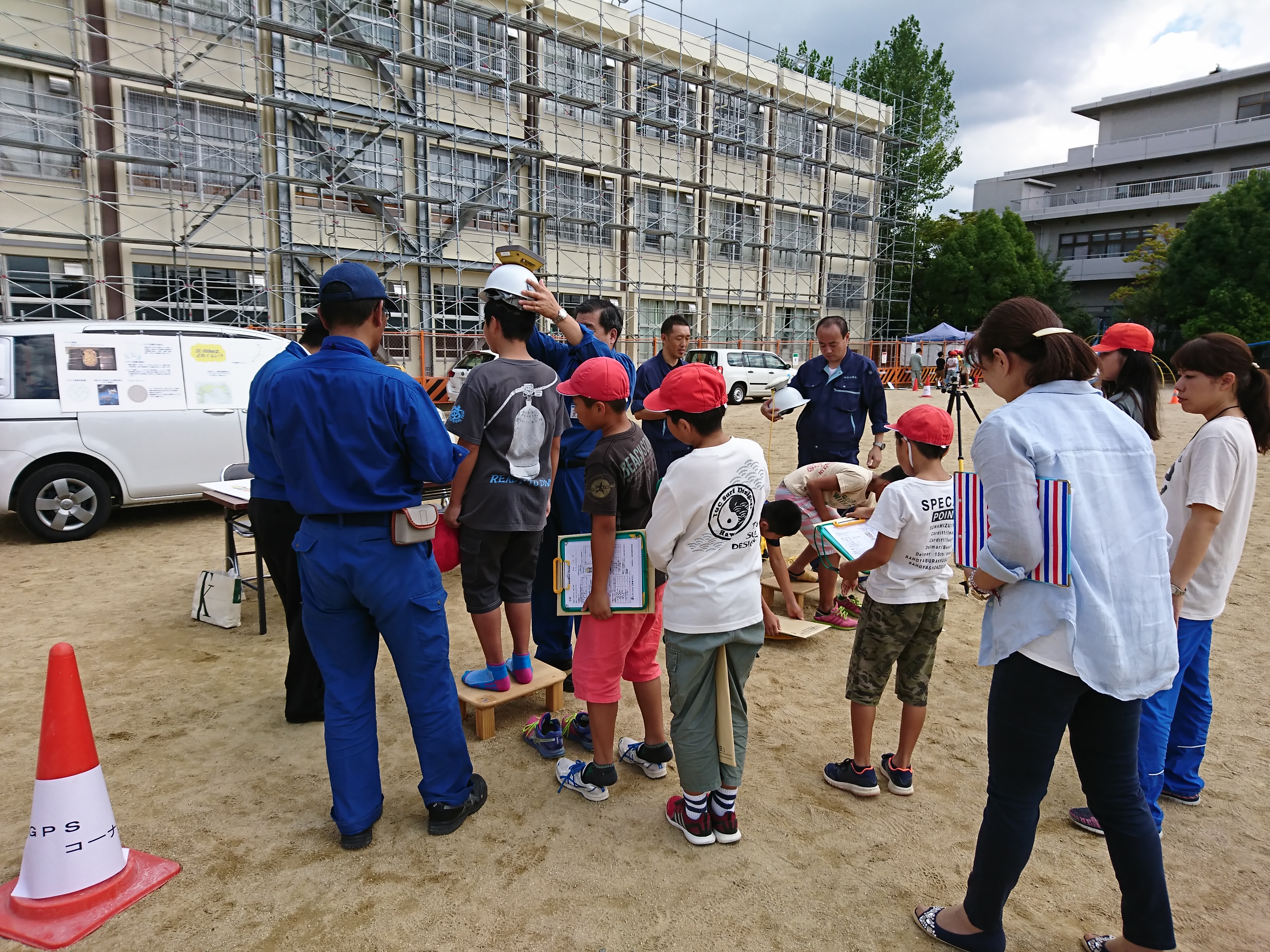 大阪府測量設計業協会主催で、大阪府下の小学生を対象に、測量機器を実際に使って子どもたちに測量を体験してもらうと共に、地図や測量への理解を深めてもらうことを目的とし、