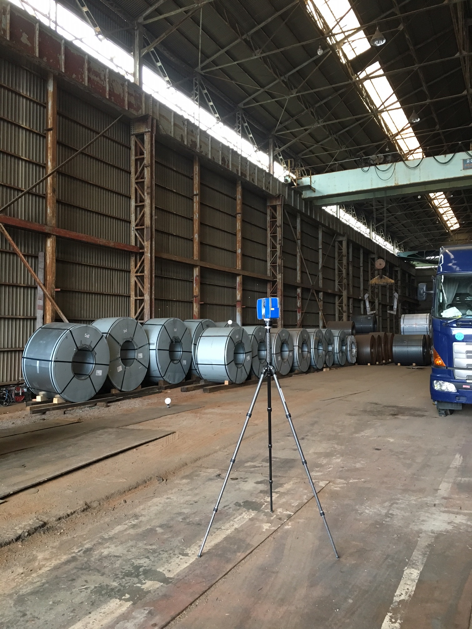 3Dスキャナーを使用して建物の高さを測る。
