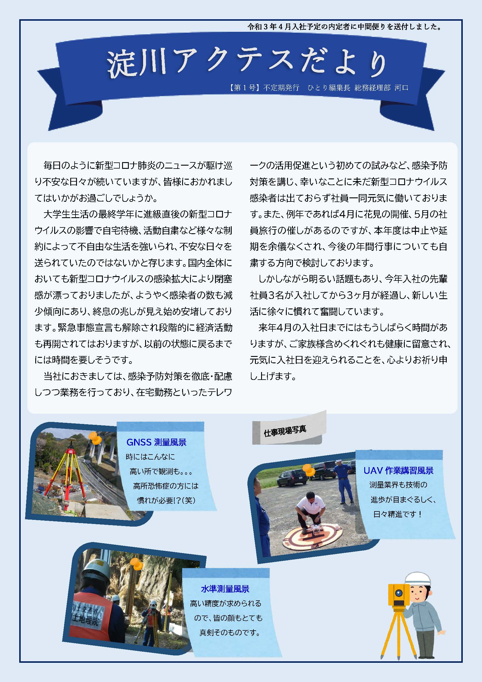 淀川アクテスに入社して測量業務に携わり2年になります。